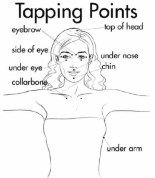 This is called one ‘round’ of tapping, because you go around all 8 tapping points once. Some people like to start at the Eyebrow point, others like to start at the Top of the Head. Personally, I like to start at the Top of the Head, because I feel it makes more sense to me to ‘sweep through’ all the points from top to bottom. There’s no right or wrong way to go through the points. Do what feels right for you.