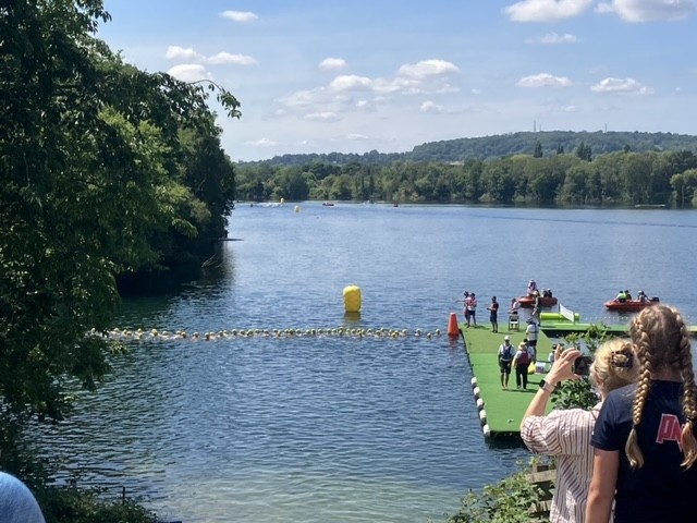 Between races, Reese found time to reconnect with friends from other clubs, sharing laughs and sunshine in the vibrant atmosphere of the open water community.