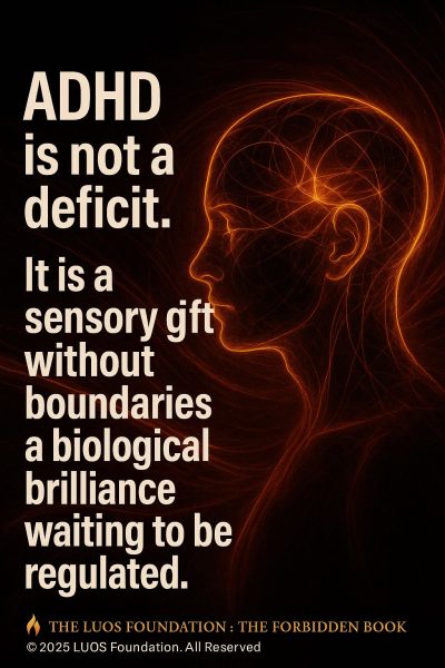 The DSM looked at behaviour. LUOS FOUNDATION FORBIDDEN BOOK looks at the architecture. This chapter exposes the real origin of ADHD the organ-level overload that makes the world feel too loud, too fast, too unpredictable, too much. ADHD = Skin overwhelm + Spleen hyper prediction + Liver voltage overflow.