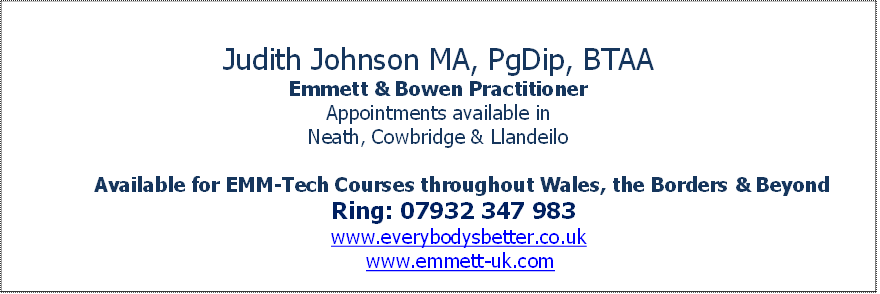 More information about Emmett Technique and training courses are available online at www.emmett-uk.com