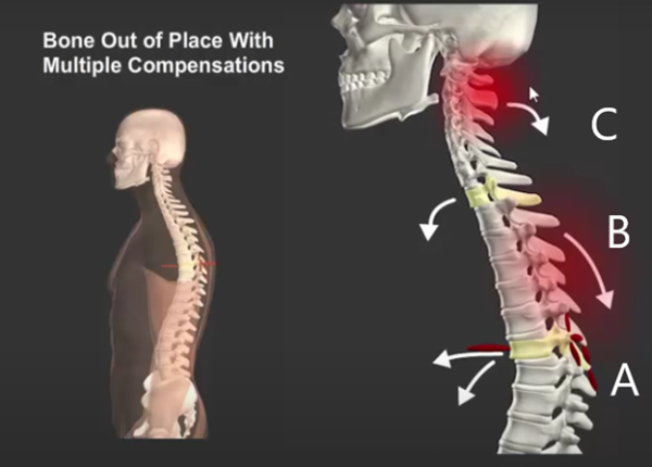 A key principle of ABC is that our spines cannot correct the forward movement of vertebrae because we have no muscles behind the spine to pull vertebra backwards. Daily activities such as deskwork, lifting, accidents can all cause these forward misalignments that the body can't correct and so the body starts to collapse forward and then twist or tilt to compensate.